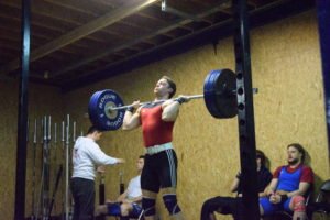 Meglen opende op 120 kilo. Peter had zijn eerste beurt op 114kg gemist maar ging ook naar 120kg. Meglen volgde Bas op en sloeg met gemak 120kg voor. Hij nam zijn tijd voor de jerk en wist deze ook vrij gemakkelijk uit te stoten. Good lift! Peter volgde Meglen met 120kg en wist deze wonder boven wonder te behalen! Good lift! Tobias wachtte ondertussen in de warm-up area geduldig af en gaf voor zijn opener 122kg door.