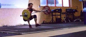 “Van boven naar beneden: Tobias, Meglen en Bas tijdens een 95kg snatch”